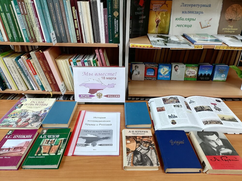 | 18 марта отмечается важный праздник – День воссоединения Крыма с Россией. Именно в этот день в 2014 году Крым официально вошёл в состав Российской Федерации. Воссоединение Крыма с Россией - это знаковое событие, которое открывает новую страницу в истории полуострова. В сельской библиотеке прошел патриотический час, на котором сотрудники библиотеки рассказали о многовековой истории, архитектурных достопримечательностях и природных богатствах республики, а также знаменитых людях Крыма, обычаях и традициях народов, населяющих полуостров. Затем ребята с помощью викторины закрепили свои знания о символике Крыма. На книжной выставке «Литературный Крым» были представлены произведения А. Пушкина, И. Бунина, М. Горького, А. Чехова, А. Куприна и других русских писателей, написанные в этом живописном крае. Автор: Абдурашидова З.Р. Фото автора. | |