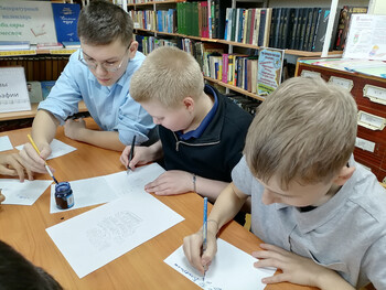 | В сельской библиотеке прошло первое занятие в этом году по основам каллиграфии в рамках федерального проекта «Гений места». Каллиграфия - это не просто красивое письмо, это целое искусство, требующее терпения, концентрации и твердой руки. Участники мастер-класса познакомились не только с историей ручного письма, но также узнали разницу между терминами «Подпись» и «Автограф». На практическом занятии получили первоначальные навыки каллиграфического письма: изучили несколько видов разминок для разогрева кисти, познакомились с разными видами шрифтов, освоили правильное положение пера при письме, попробовали технику работы остроконечным пером. Ребята старались красиво и аккуратно вывести пером и тушью свою первую фразу: «Почерк – как искусство» и разгадать секрет ровных овалов, замысловатых виньеток, наклонных линий и петель. Автор: З. Абдурашидова. Фото: А.Хужахметова. | |